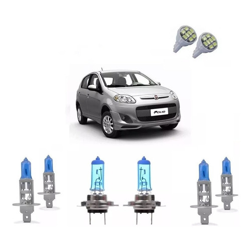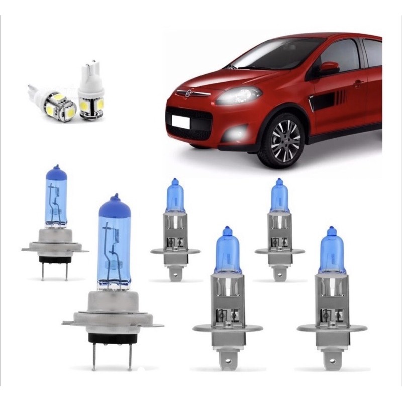 Kit Lampadas Palio G5 2012 A 2017 Super Brancas Farol H7 H1 Milha H1 55w 12v 4500k +Led