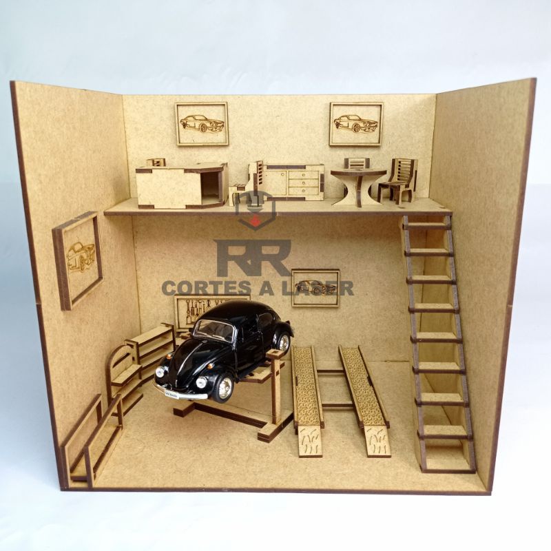 Diorama Miniatura de Oficina p/ Carinho Escala 1:32 MDF cortado a Laser NÃO ACOMPANHA O CARRINHO