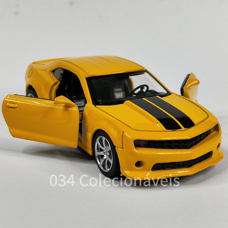 1:32 Escala Chevrolet Camaro Bumblebee Miniatura Carrinho de colecao ferro Diecast Carro de ferro❤ Som do Motor, Acende ❤ Puxa para Trás, Portas do carro que podem ser abertas