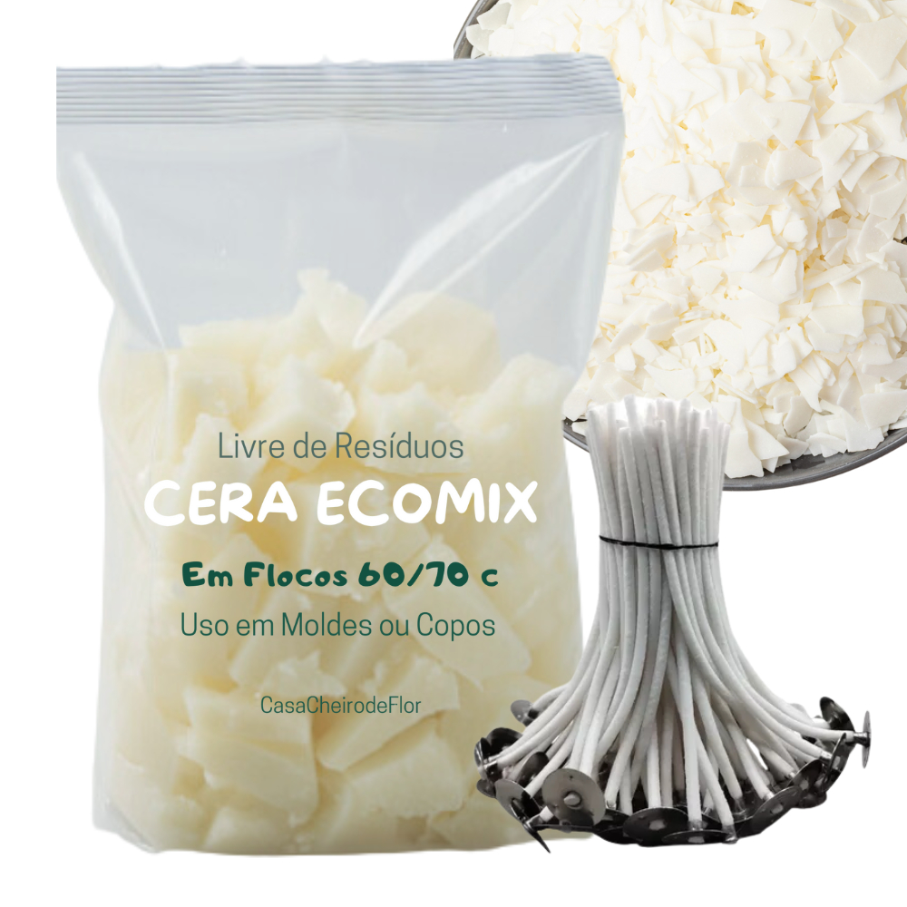 Kit Cera Parafinada de Soja Ecomix + 10 Pavio de 100% Algodão Pronto Pra uso