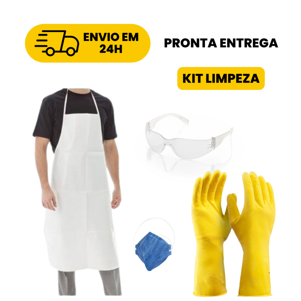 Kit Limpeza EPI Avental PVC, Luva Multi uso, óculos incolor, máscara PFF2