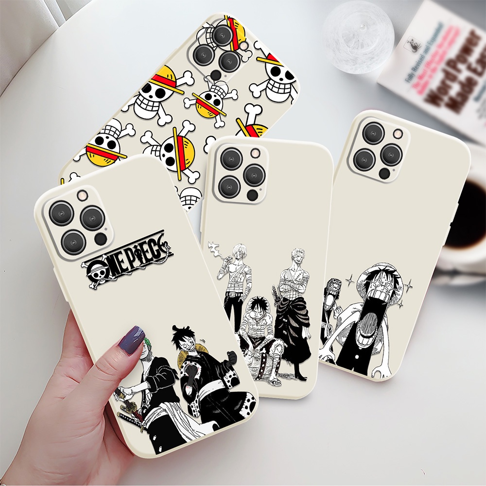 Caixa De Anime One Piece Pattern White Casing Compatível Para iPhone 14 11 13Pro Max 12 14Plus Lente Protege Bordas Retas Silicone Macia Telefones Celulares