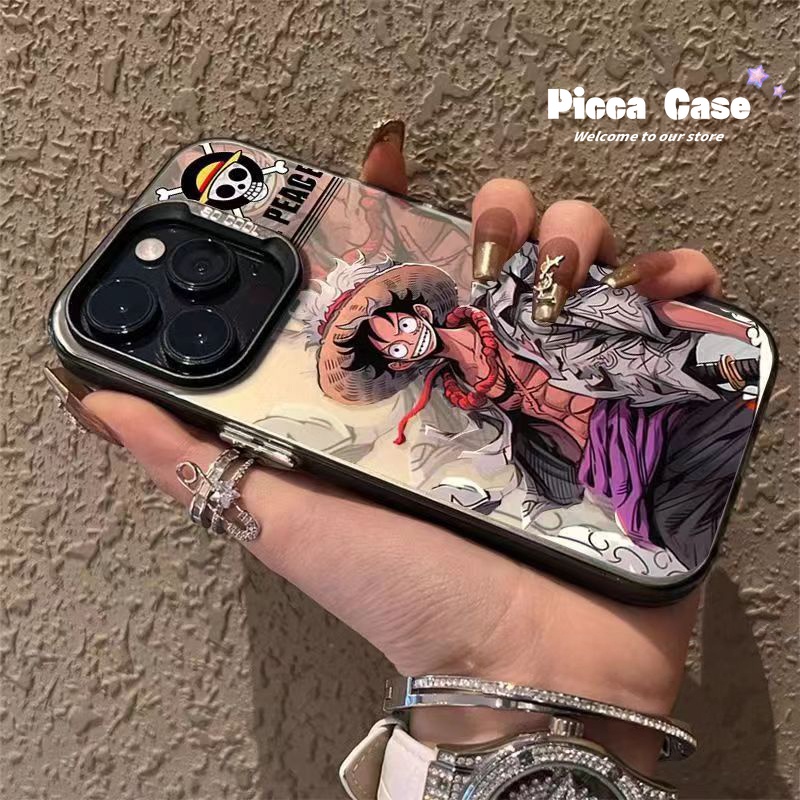 Anime One Piece Couples Cool Luffy Case Compatível Para IPhone 13 11 15 Pro Max XS X 15 14 Plus 7 8 XR 14 12 Moda Marca Proteção Da Lente Metálica Capa Macia