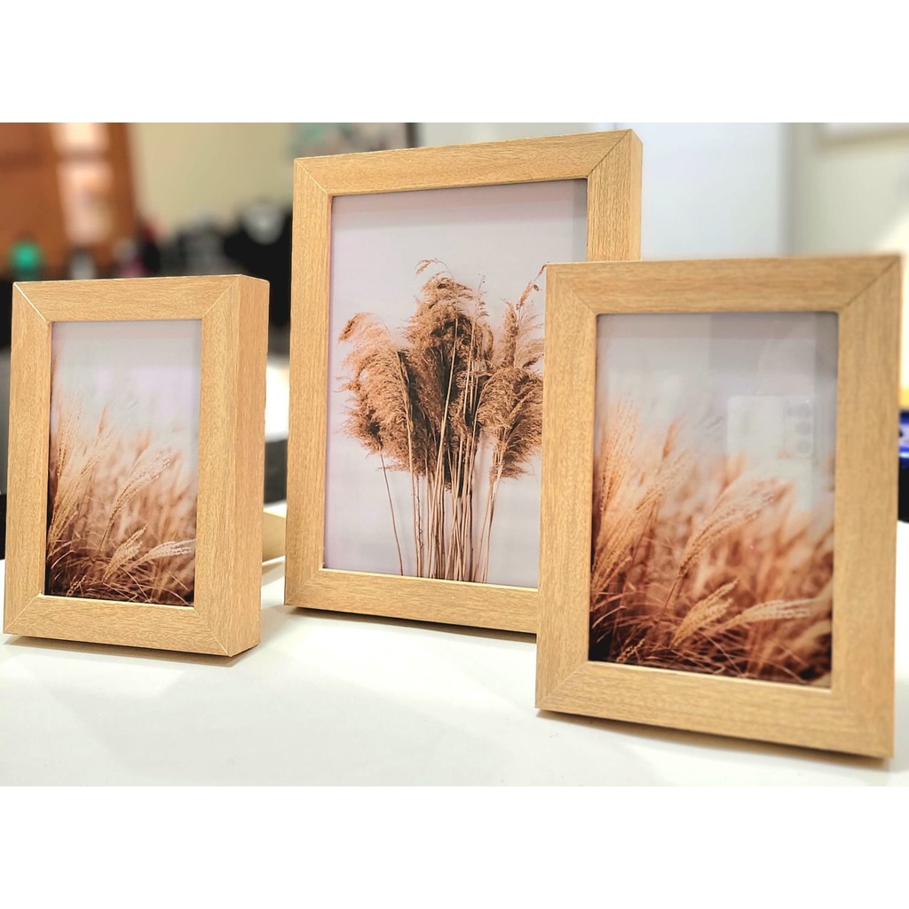 Kit 3 Porta Retratos Para Fotos Decoração Premium Com Moldura Bege Lisa Caixa Alta 3 CM E Vidro