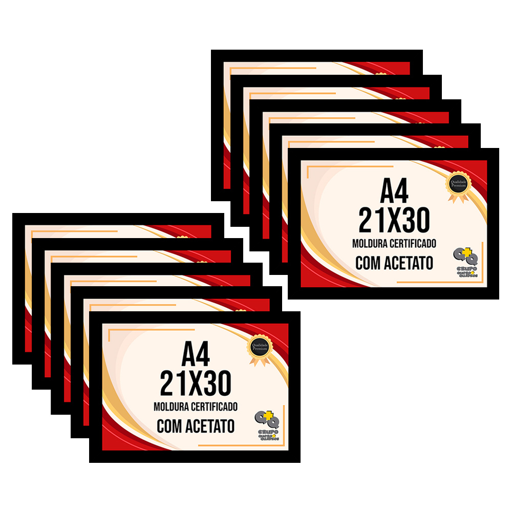 Kit 10 Molduras Certificado Quadros A4 com Acetato Documentos Fotos para Família Impressão Porta-retratos Diploma Poster Alvará Premium