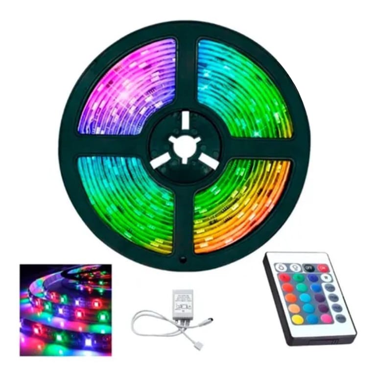 Fita Led Ultra Rgb 5050 5 Metros Completa + Fonte 3A 12v + Controle Rolo 5m 16 Cores