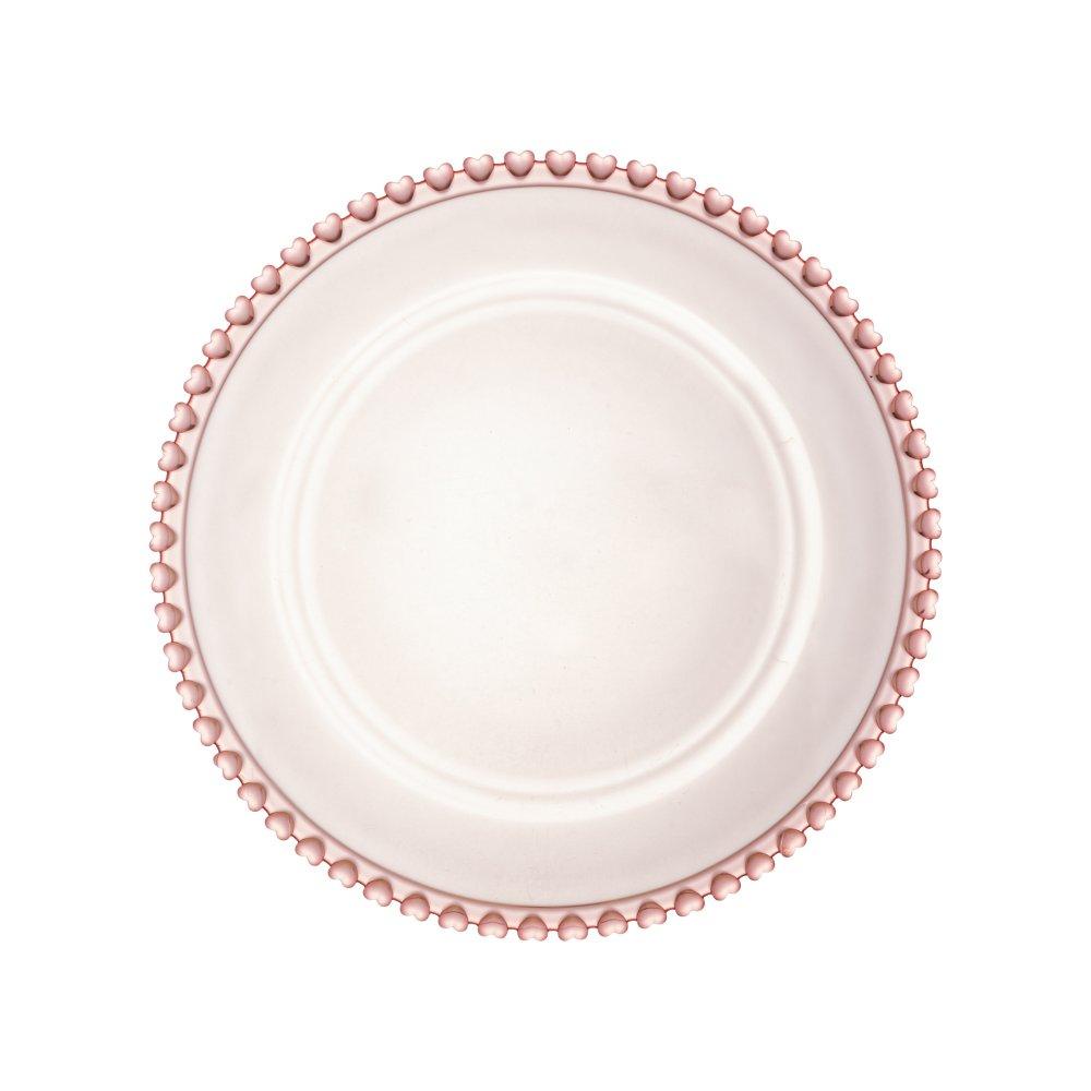 Prato Raso Lyor Coração Borda de Cristal Rosa 28cm