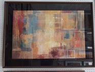 Quadro decorativo abstrado com moldura de madeira e vidro.