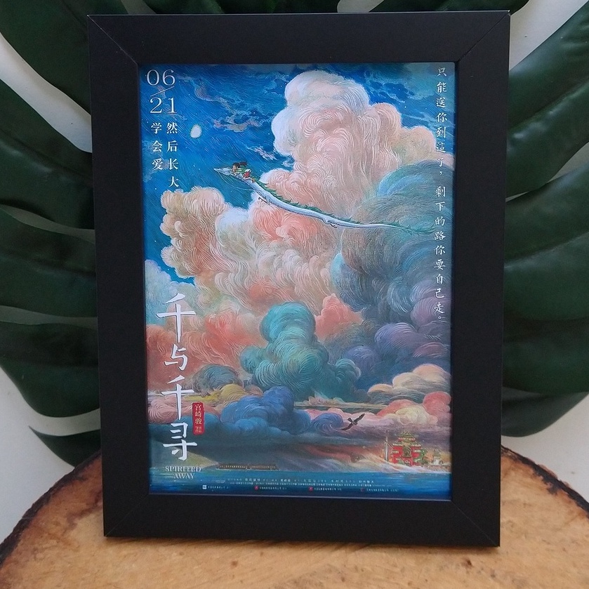 Quadro decorativo com moldura e vidro A viagem de Chihiro studio ghibli Hayao Miyazaki anime pôster geek