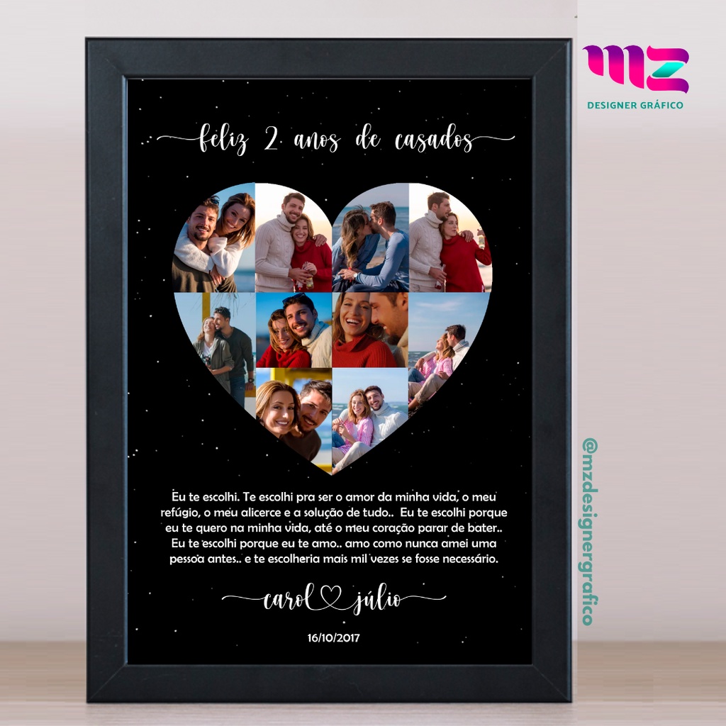 Quadro Personalizado com 13 fotos de Casal para Dia dos Namorados Tamanho A4 Com Moldura e acetato