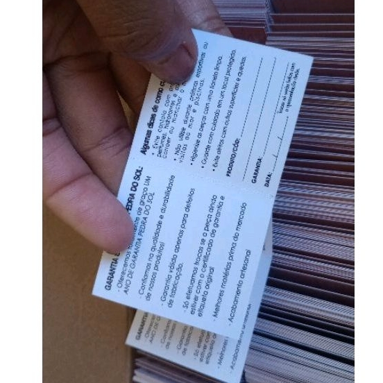 500 unids - Certificado de garantia 9x5cm - colorido frente e PB no verso
