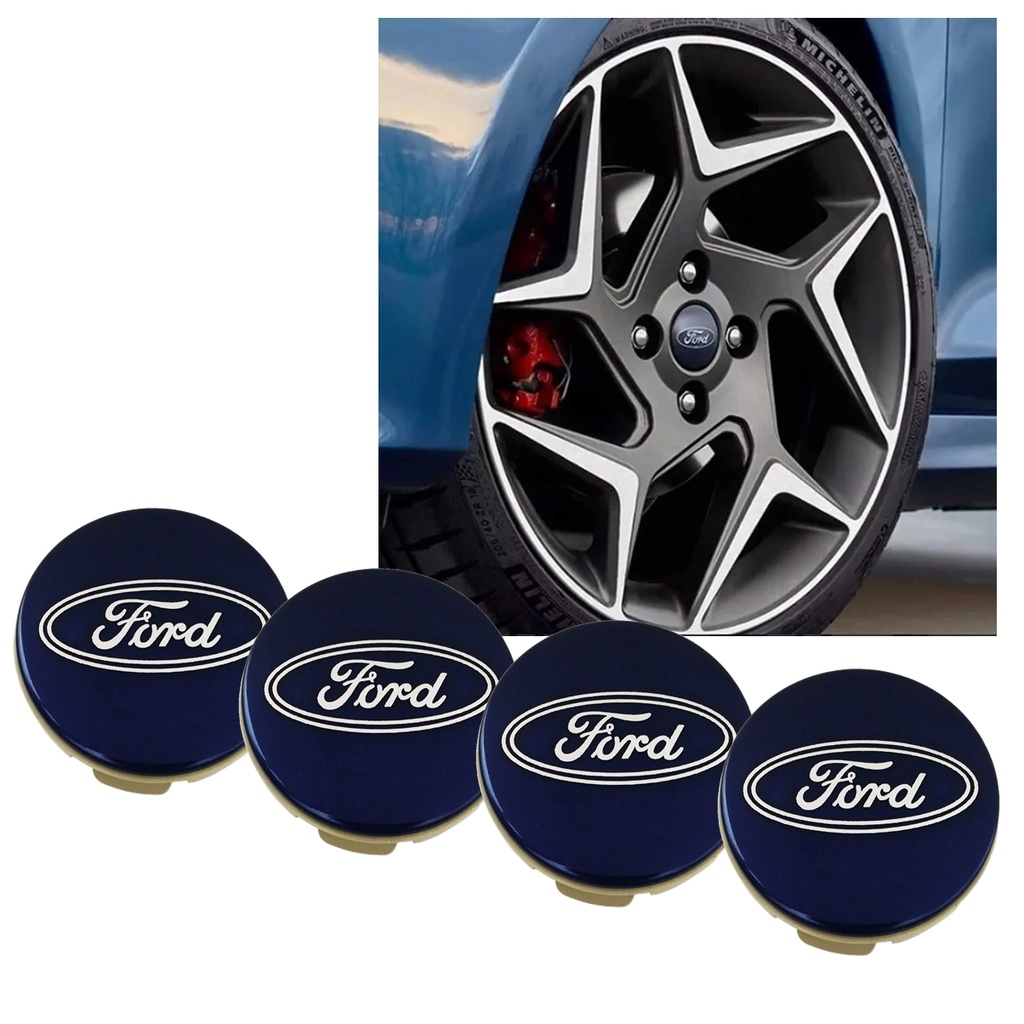 Jogo 4 Calota Calotinha Meio Roda Ford New Fiesta Ecosport Ka Ka+ Sedan New Focus 55mm Azul