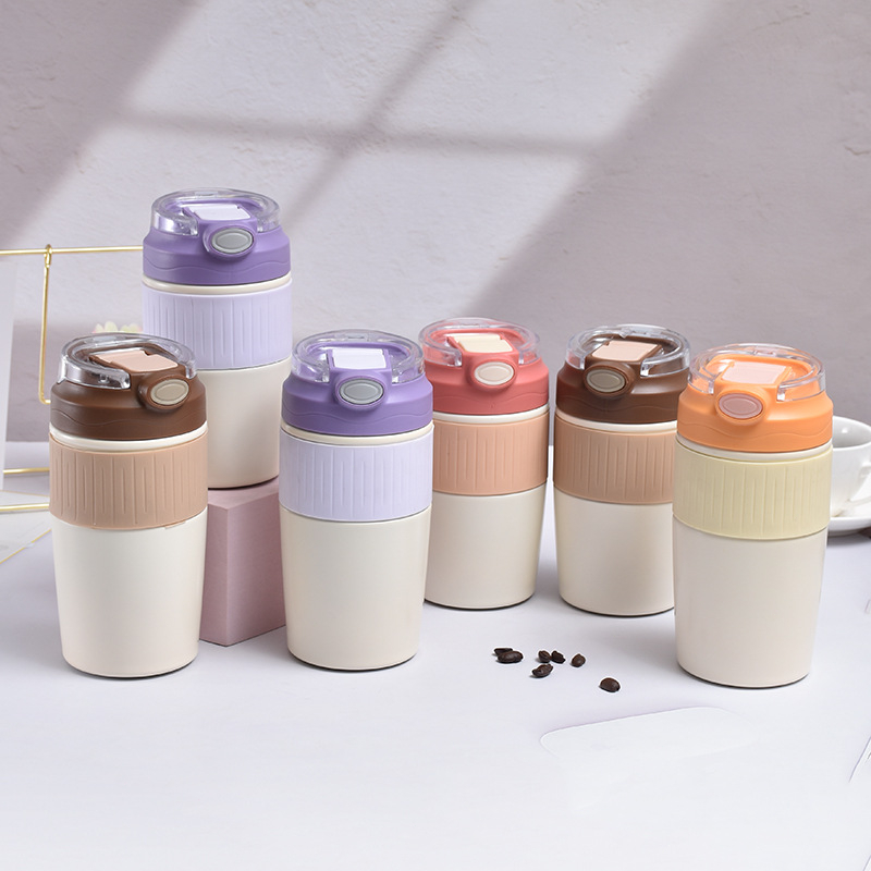 Copo Térmico De Café 320ML/420ML Tampa Dupla Aço Inoxidável Quente Ou Gelado Com Canudo de Silicone