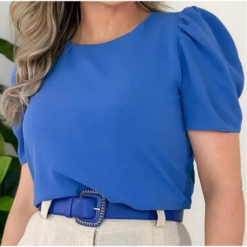 Blusa Social Básica com Manga Detalhada Feminina Gola Redonda no Tecido Duna Super Elegante Moda Verão. Já vem garanti a sua.