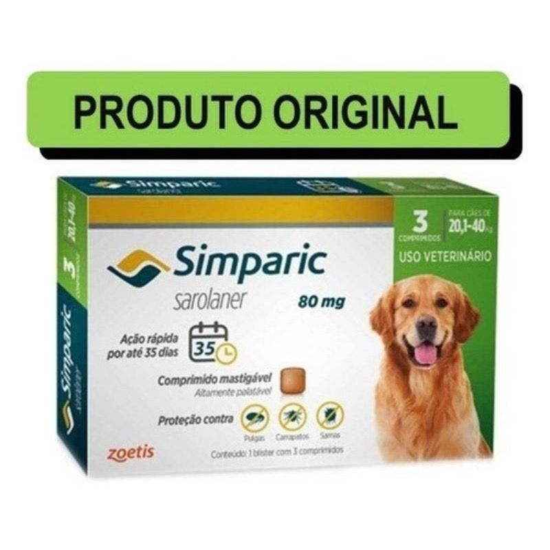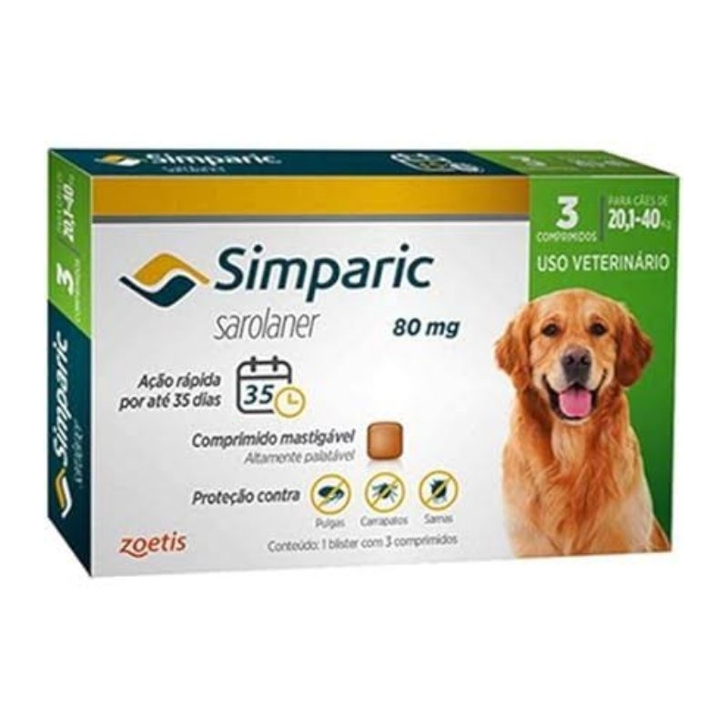 KIT 3 Antipulgas Simparic 80 Mg Para Cães 20,1 A 40kg ENVIO IMEDIATAMENTE