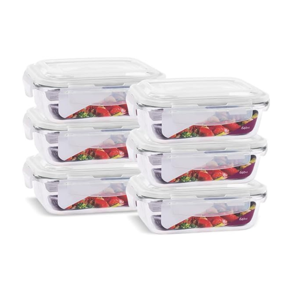 Kit 6 Potes de Vidro 640 ml Hermético Marmita Fit com Tampa 4 Travas