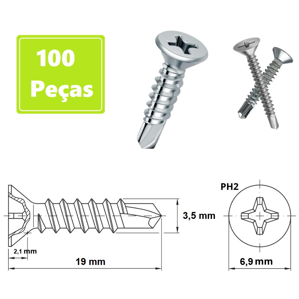Parafuso Auto Brocante Chata Philips 3.5 x 19 - Caixa 100 Peças