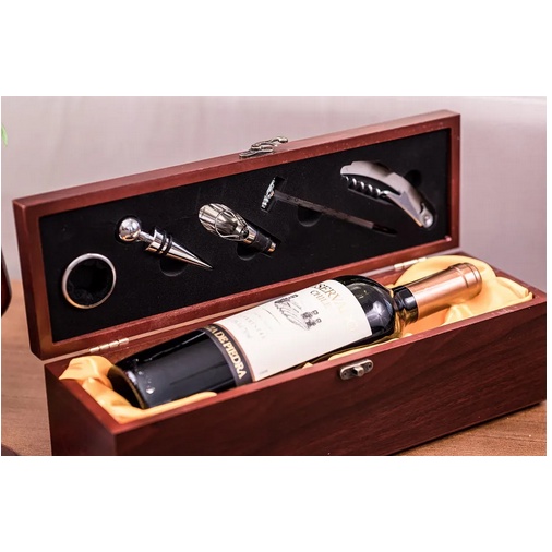 Kit Vinho Com 5 Peças Com Estojo E Porta Vinho De Madeira