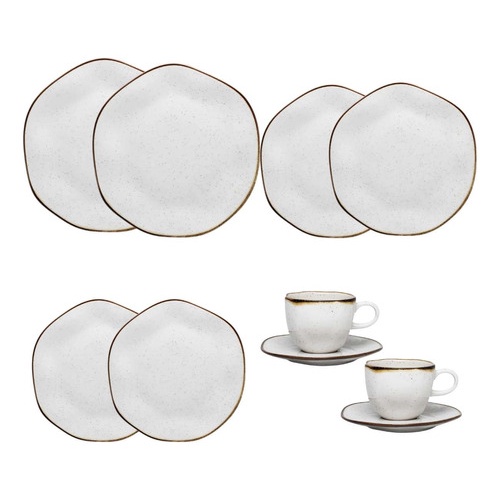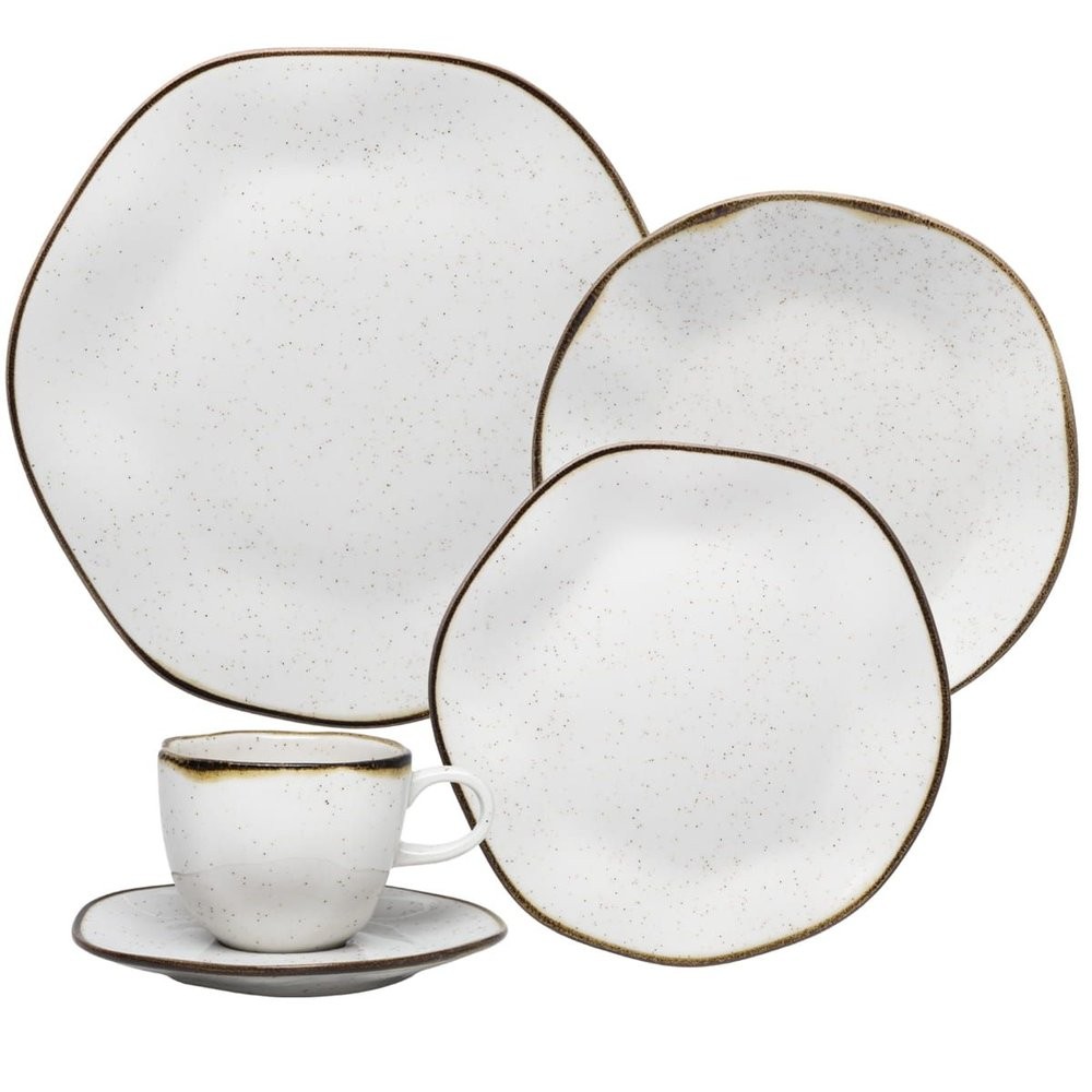 Conjunto de Jantar - Luxo Ryo Maresia 40 Peças Oxford Porcelanas, Pratos Areia