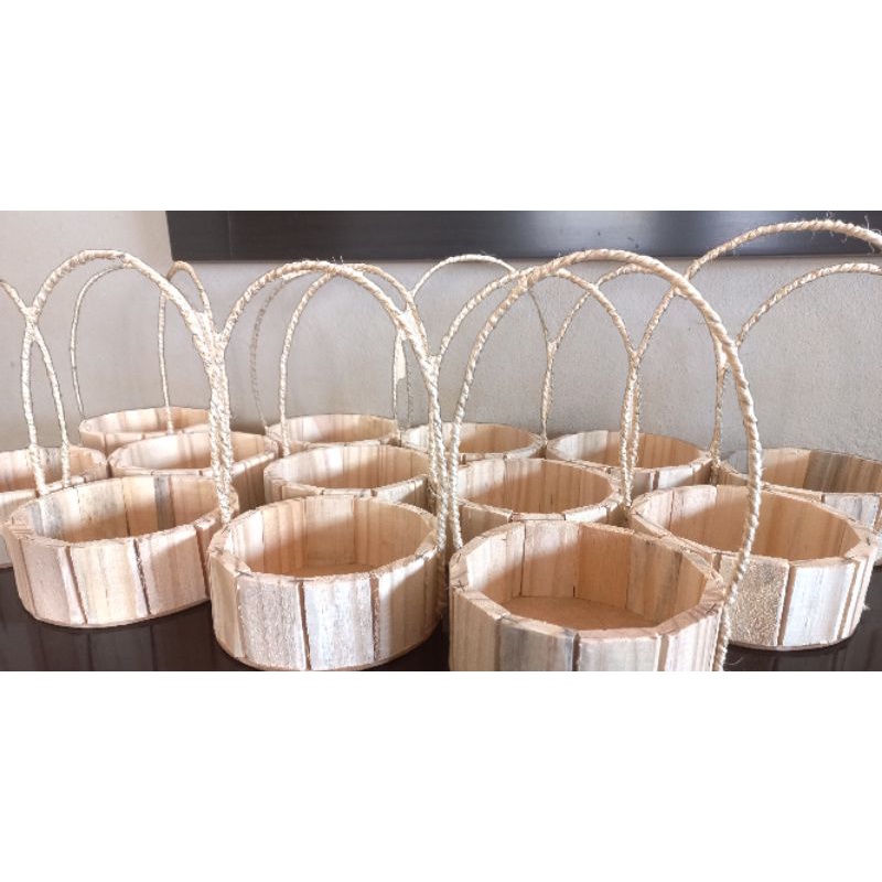 kit 10 Cesta Fraldeira Madeira 13 cm Alça Fibra Premium Cesta de Páscoa Presente Natal Cesta Cosméticos