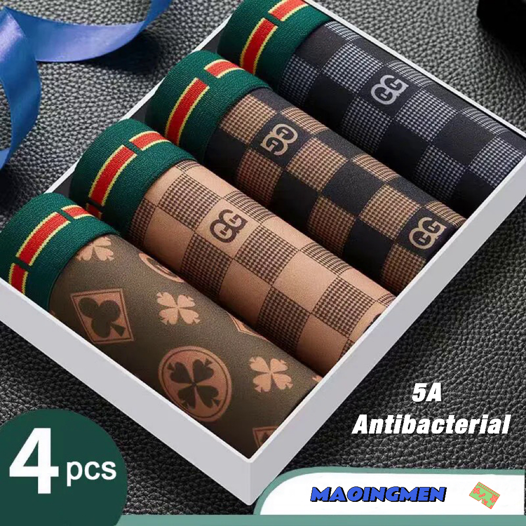 [MAOINGMEN] Kit 4 Cueca Boxer Masculino Roupa Íntima Masculina Estampada Animada Boxers De Tecido De Seda Gelada