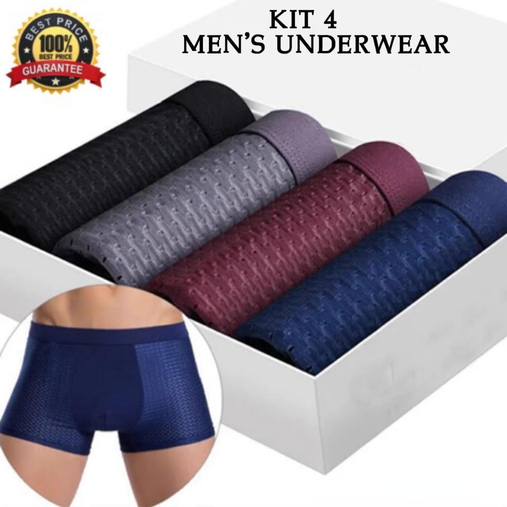 Kit 4 Cuecas De Boxer Masculino De Verão Bambu Roupa Íntima Masculina