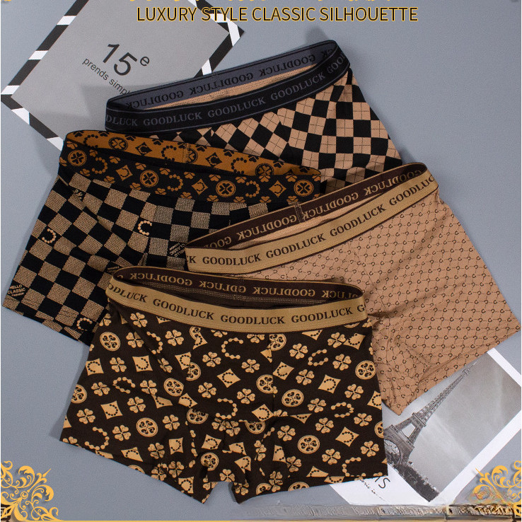 4Pcs Cuecas De Boxer Masculino Algodão Impresso Transferência De Umidade Respirativo Roupa Íntima Masculina De Luxo Cintura Média Malha