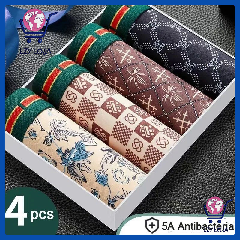 LIZIYI Kit 4 Cueca Boxer Masculino Roupa Íntima Masculina Estampada Animada Boxers De Tecido De Seda Gelada
