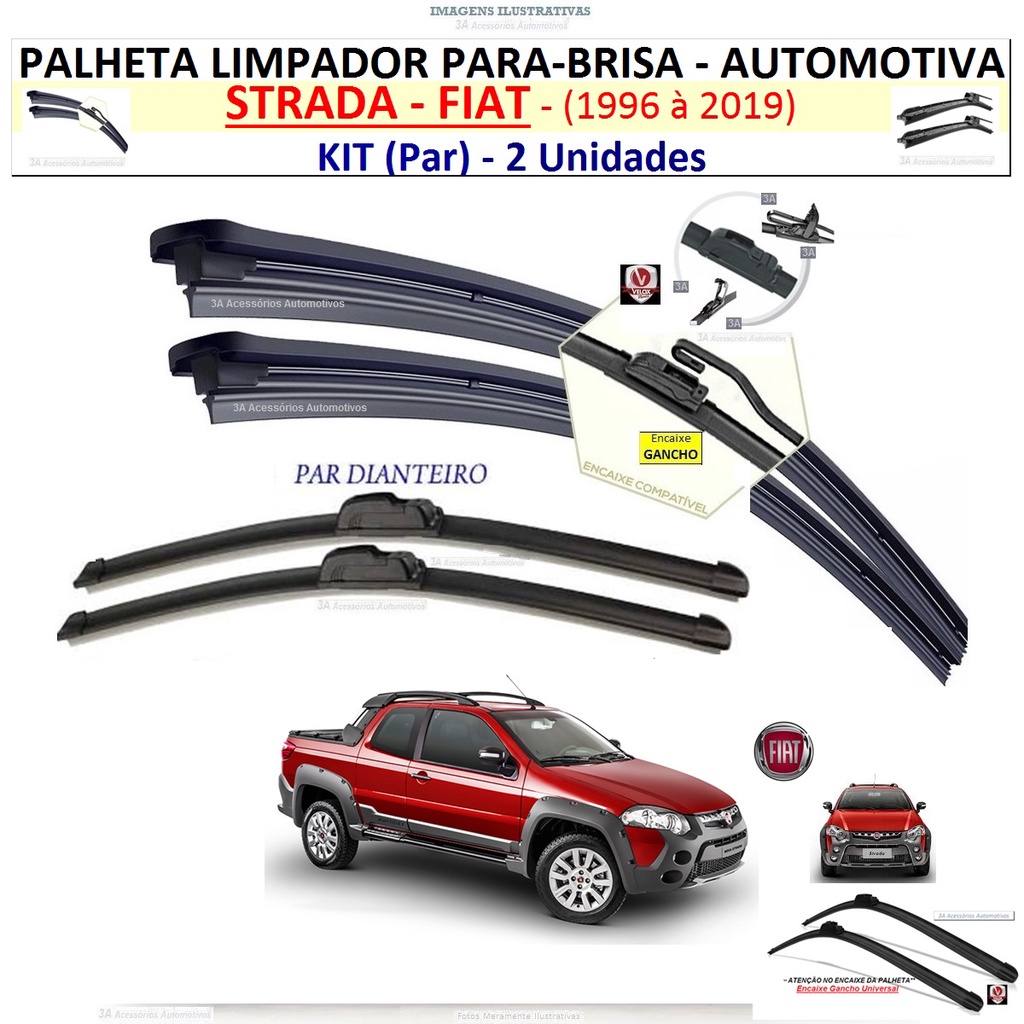 Par De Palhetas para Limpador Parabrisa Dianteiro para Fiat Strada 2001 A 2019 Borracha grafitada de silicone