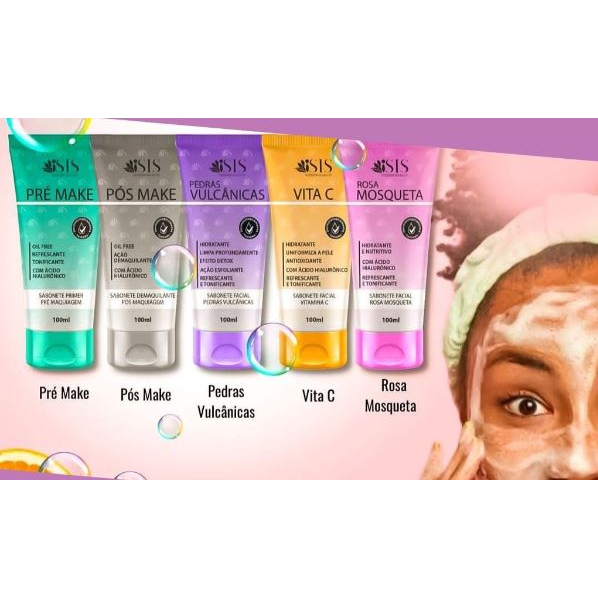 Sabonete Limpeza Facial Gel Esfoliante Skin Care Cuidados com a Pele Rosa Mosqueta Vitamina C Pedras Vulcanicas
