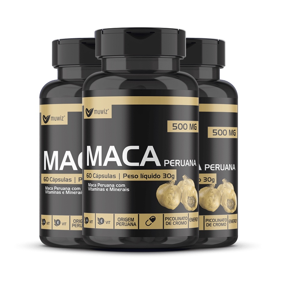 Maca 500mg 360 Capsulas Muwiz 3 Frascos de 120 capsulas Vitaminas
