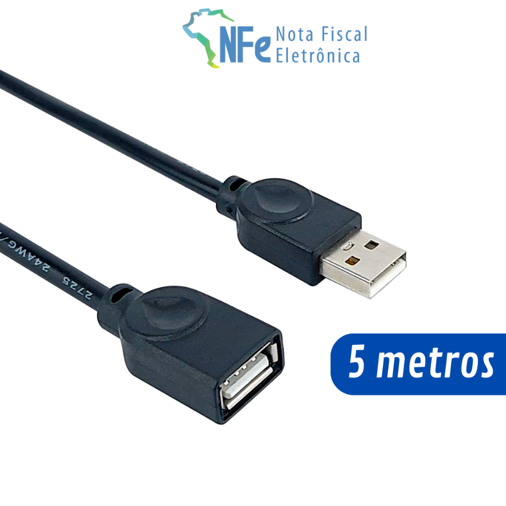Cabo Extensor USB 2.0 de 5 Metros Macho x Fêmea AM+AF com Filtro