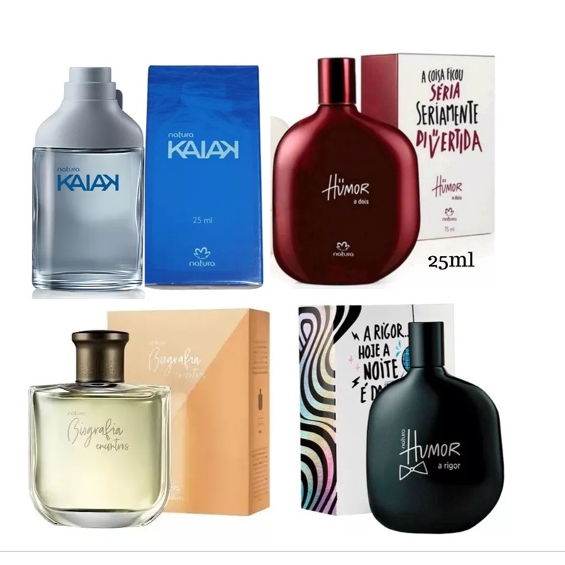 Kit c/ 04 Perfumes Miniatura Masculino Kaiak Humor e Biografia Natura (25ml cada)