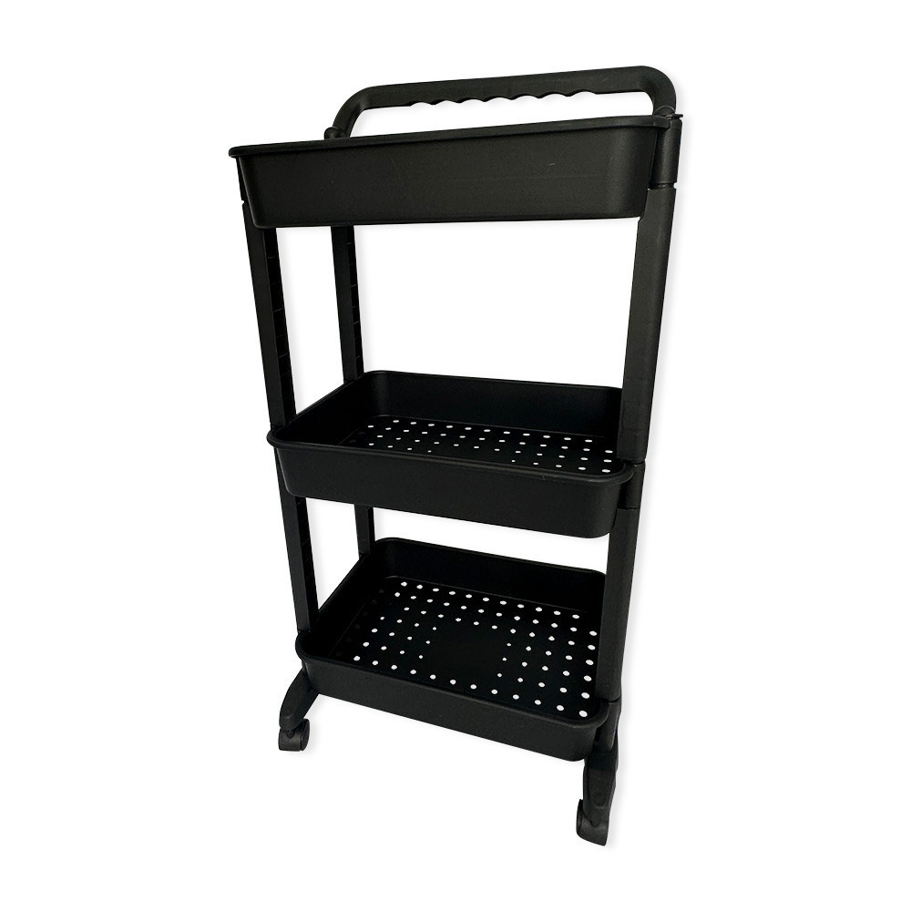 Carrinho Organizador Multiuso Com Rodinhas Banheiro Lavanderia 3 Prateleiras Preto