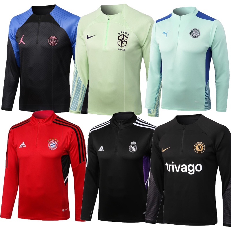 2022 2024 Real Madrid Manga Longa Meio Zíper Camisa Uniforme De Treinamento De Futebol