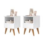 kit Mesas De Cabeceira Retrô Pés Palito Em Madeira Maciça 2 Gavetas e 1 Nicho - Pop - Branco