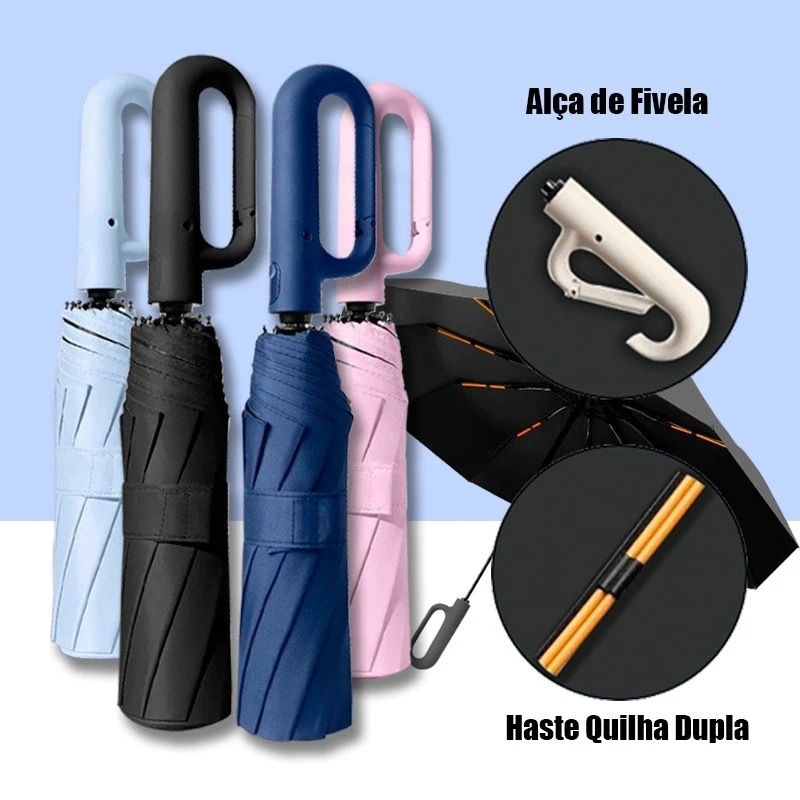 Guarda-Chuva Leve Compacto e Inovador com Design Moderno Alça Ergonômica em Formato de Gancho Cores Variadas Portátil Resistente Dobrável