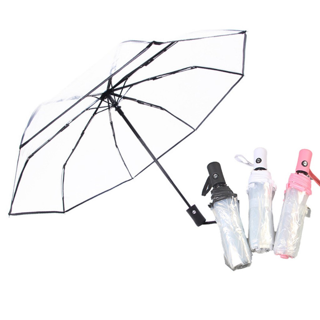Guarda Chuva Transparente Dobravel Resistente Para Homem e Mulher estilo das novelas Coreanas com Borda Preta ou Branca