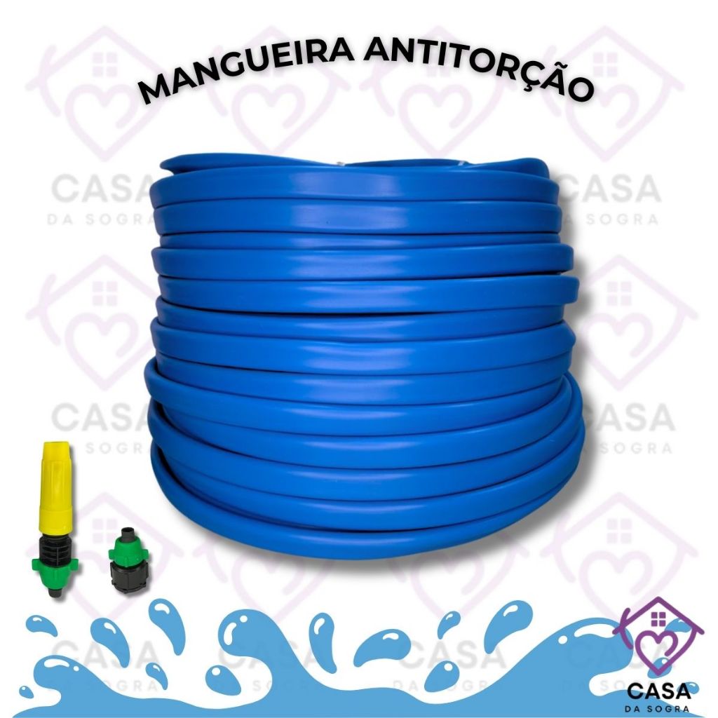 Mangueira Jardim Anti Torção Azul Super Flexível 10, 15, 20, 25 e 30 Metros Flat Com Esguicho E Adaptador