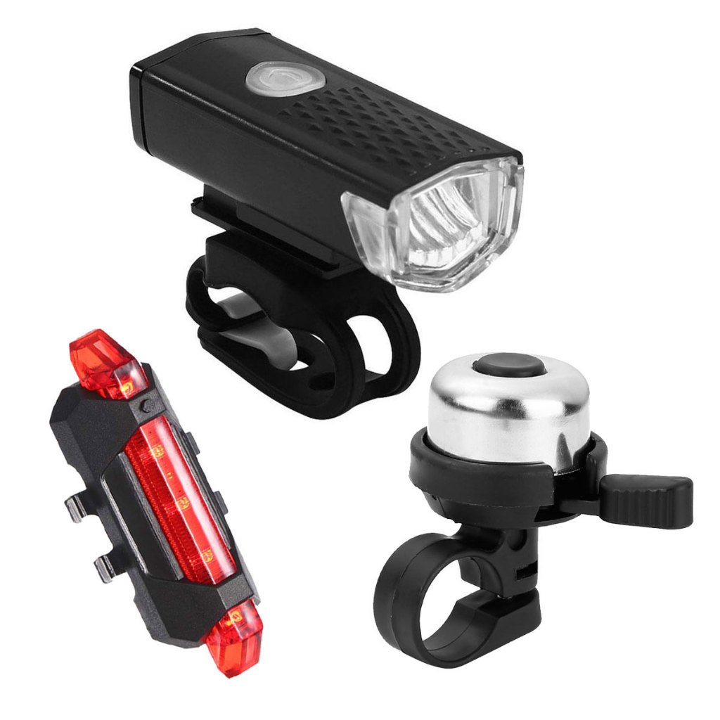 kit Sinalizador Traseira Recarregável Farol Lanterna Bike LED Usb + Buzina Campainha Bike Trim Trim