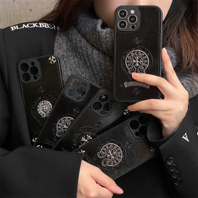 Moda Na Marca Caso De Telefone Para iPhone 16/15/14/13/12 Pro Max À Prova De Choque Ultra-Fino Couro Metal Etiqueta Capa