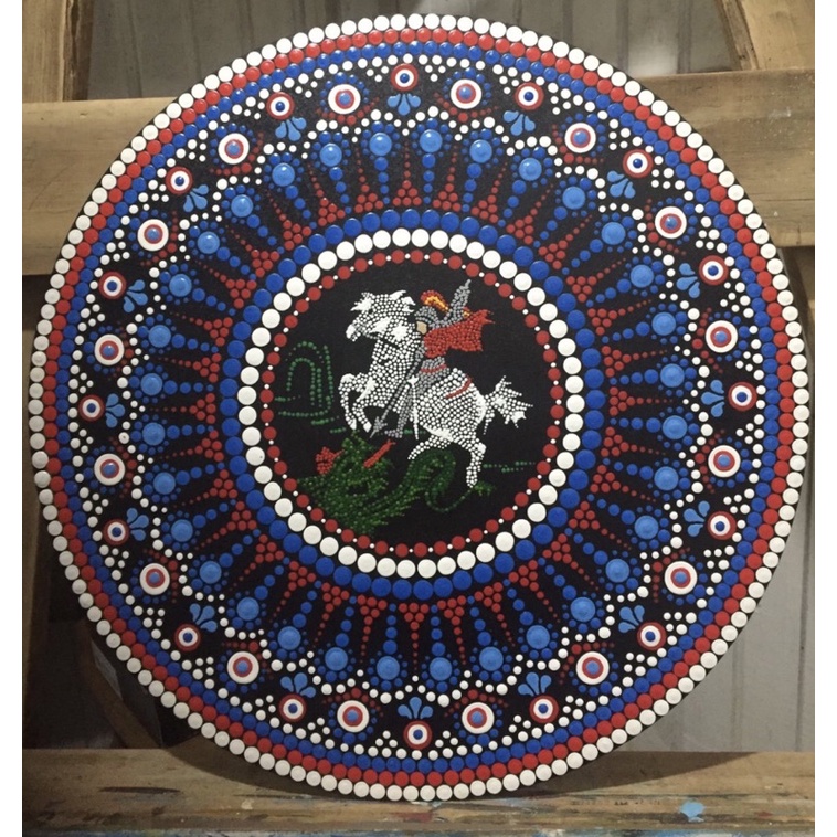 Mandala Pontilhada de São Jorge/Ogum - 3 mm ou 6 mm - Umbanda - 35 cm / 40 cm / 50 cm / 60 cm / 70 cm - PINTADA A MÃO