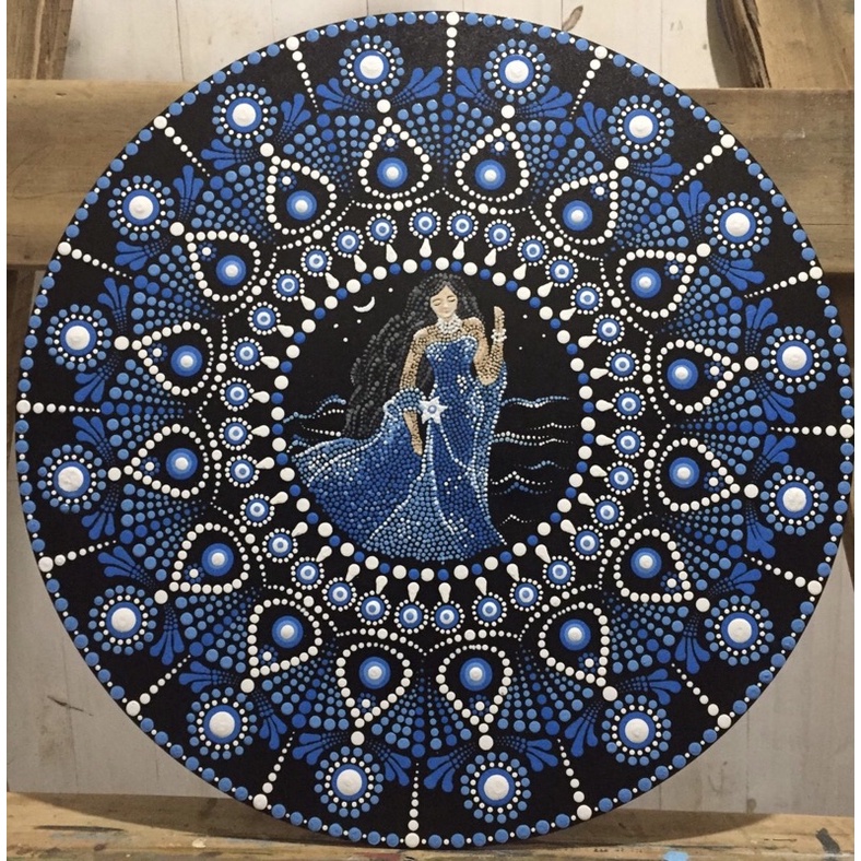 Mandala Pontilhada de Iemanjá - 3 mm ou 6 mm - Umbanda - 35 cm / 40 cm / 50 cm / 60 cm / 70 cm - PINTADA A MÃO
