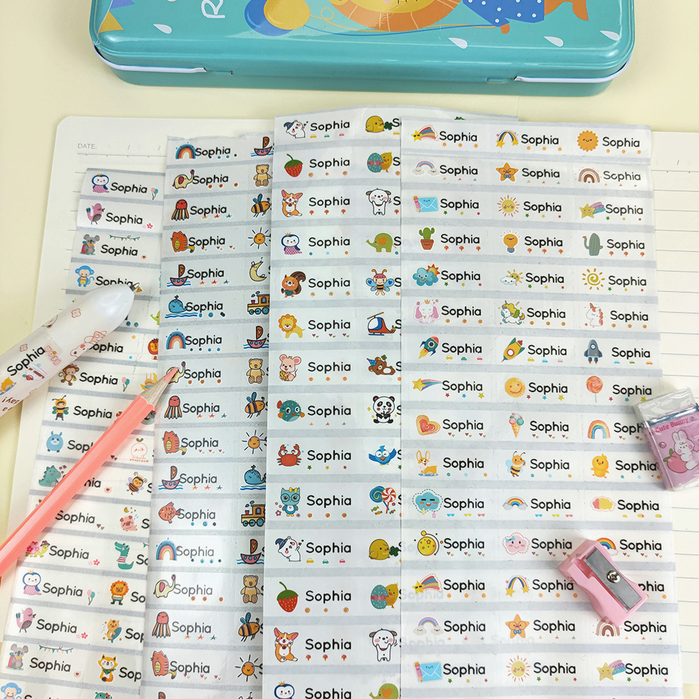 60pcs 120pcs Nome Do Animal De Desenho Animado Adesivos Personalizados À Prova D'água Etiquetas Personalizadas D'água Para Crianças Papelaria Escolar