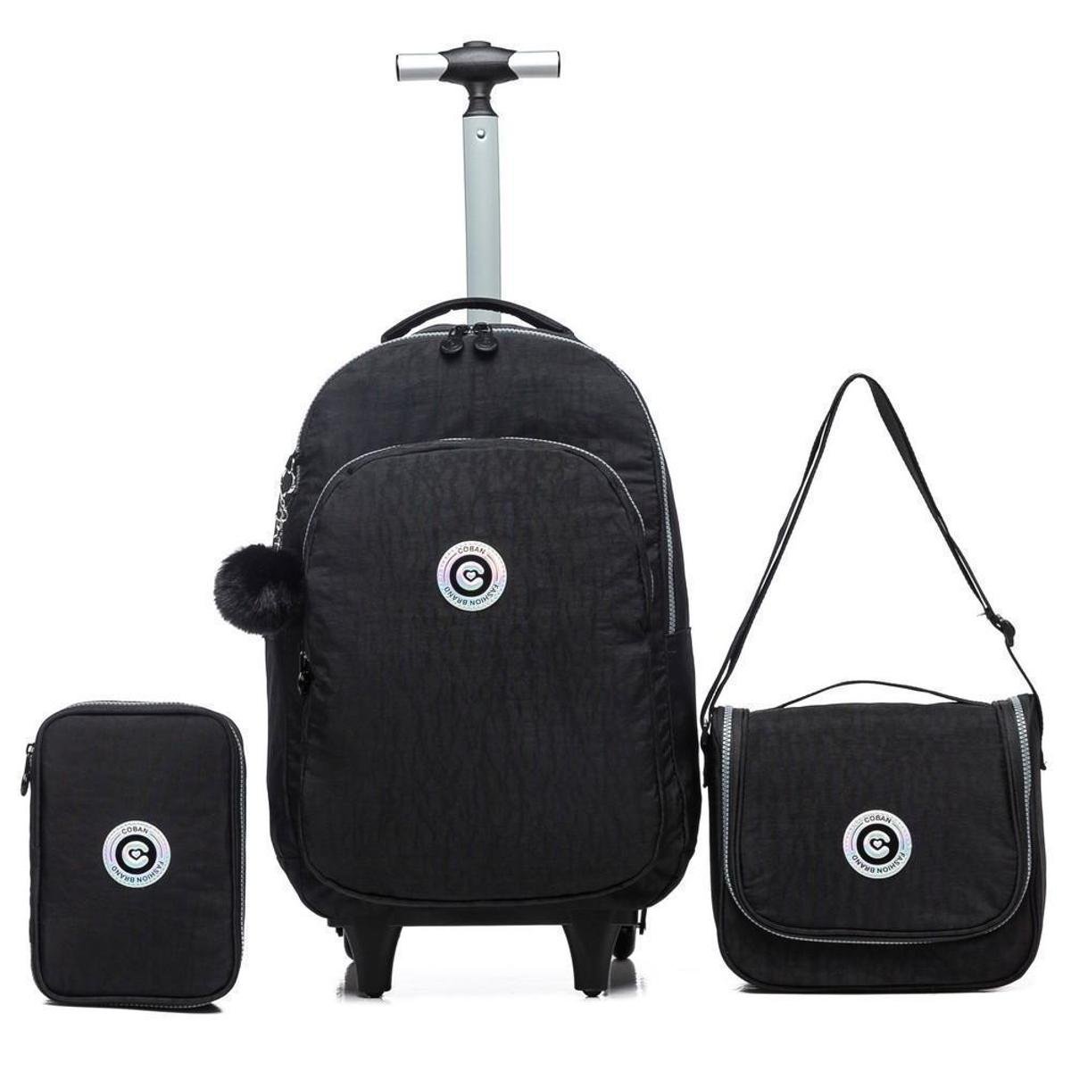 Kit Mochila De Rodinha Juvenil Reforçada Lancheira Estojo Moderna Coban 22 litros