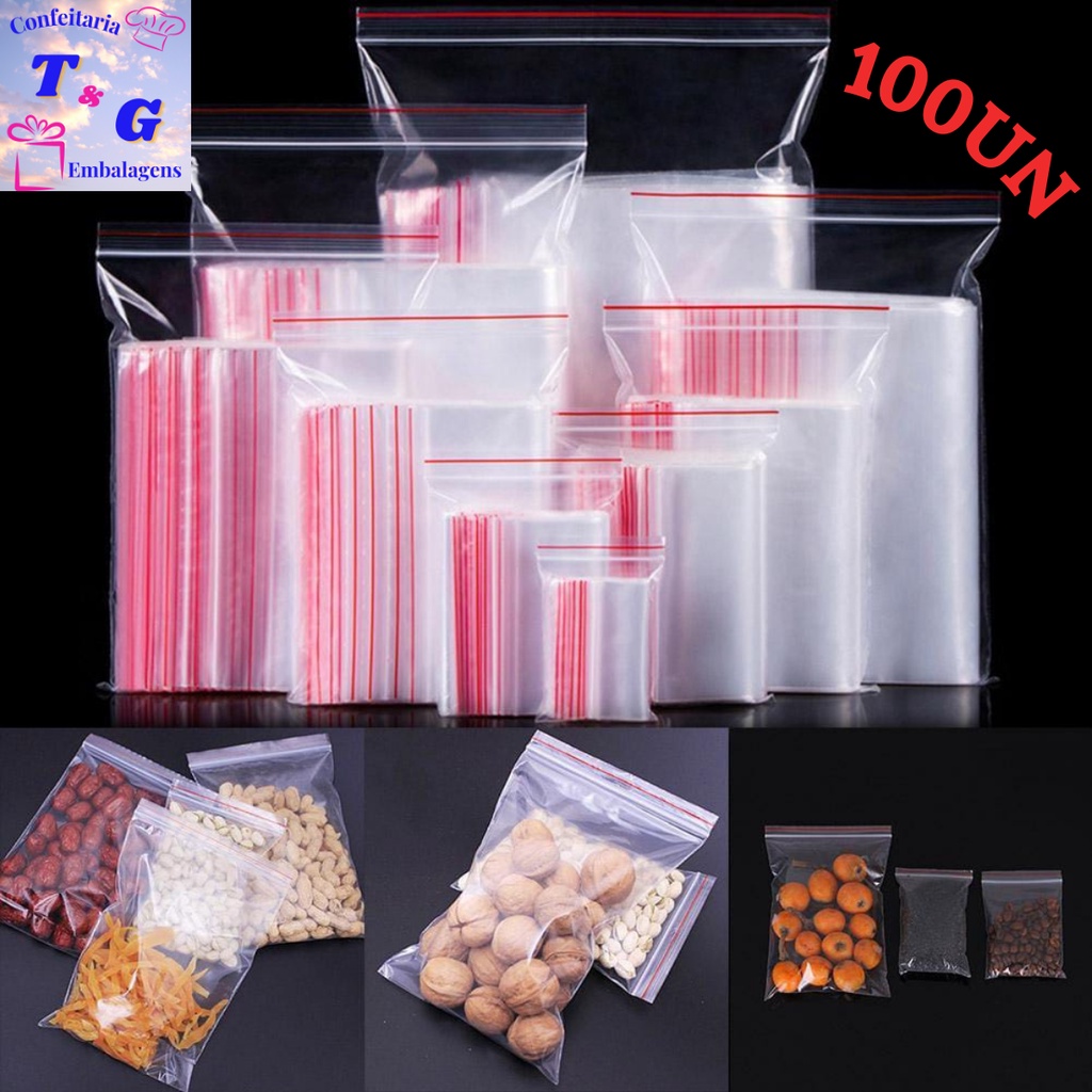 Saco Zip Abre e Fecha Diversos Tamanhos com 100 unidades Hermético Saquinho Plástico Freezer Geladeira