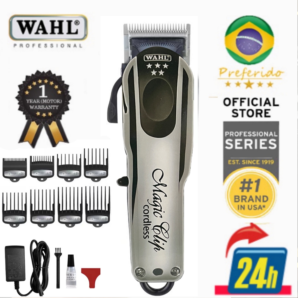 Maquina de Cortar Cabelo Sem Fio Wahl Magic Clip Cordless Profissional com 8 pentes Premium
