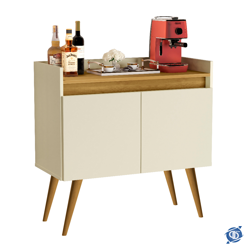 Aparador Sala Retrô Pés Palito Em Madeira Maciça - Luxo 2 Portas - Off White Com Madeirado - Lojas GD Móveis