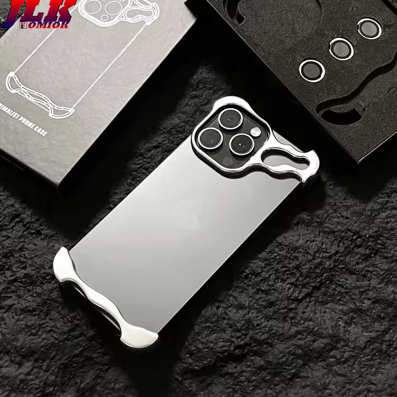[JLK] Capa Metálica Sem Moldura De Liga De Titânio Para iPhone 15 14 13 Pro Max Metal Shaped Lens Protective Film Antidrop Case