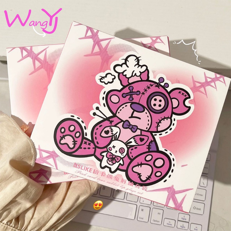 Conjunto De Batom Líquido , Acabamento Orvalhado Espelho Lustroso , Esmalte Labial Hidratante De Longa Duração , Urso Fofo Impresso